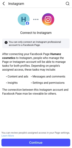 Click the arrow and select your relevant business account you wish to link with Instagram.